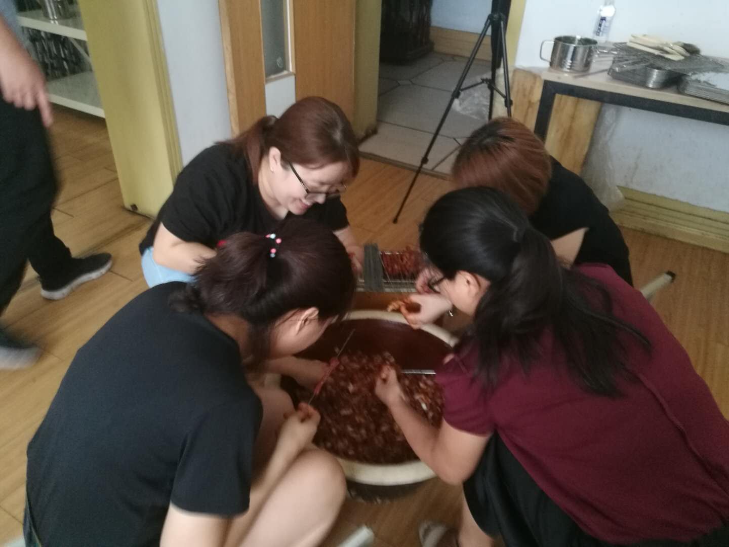 董事長也親自加入到穿肉串的隊(duì)伍中來