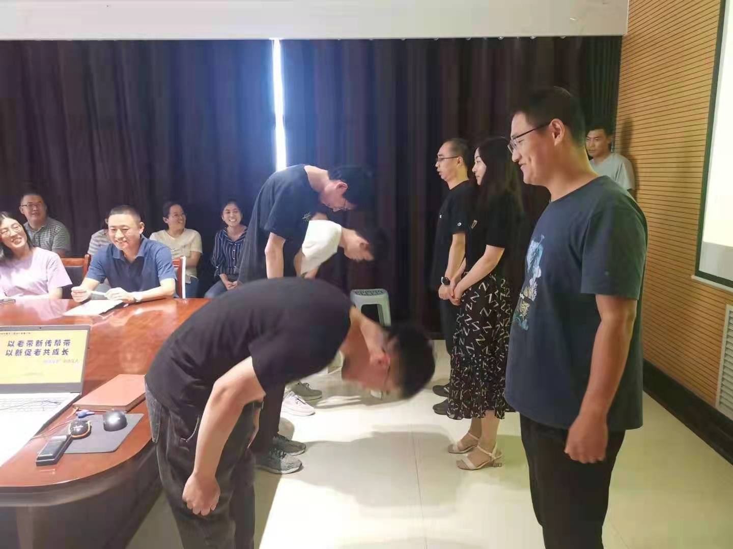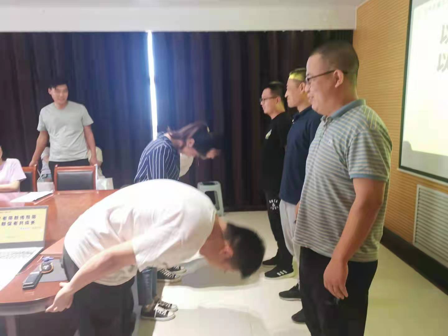 徒弟向師傅行拜師禮環(huán)節(jié)。所有徒弟面向師傅誠心誠意行鞠躬禮,在行禮過程中,徒弟們彎下腰的那一刻無不讓人感受到他們的真誠與敬意,也讓師傅們內心充滿了責任感,師徒情誼之花在此結下。