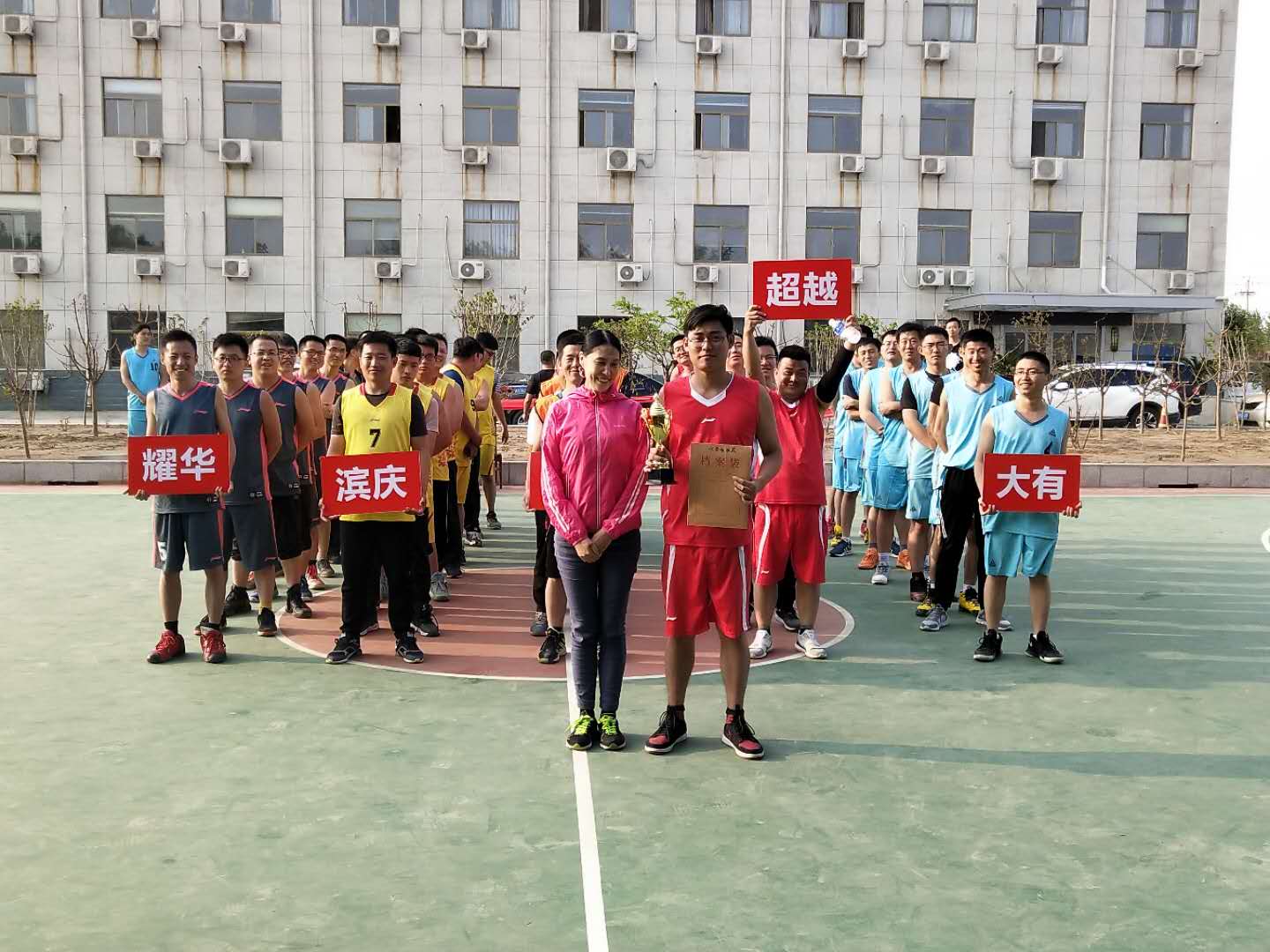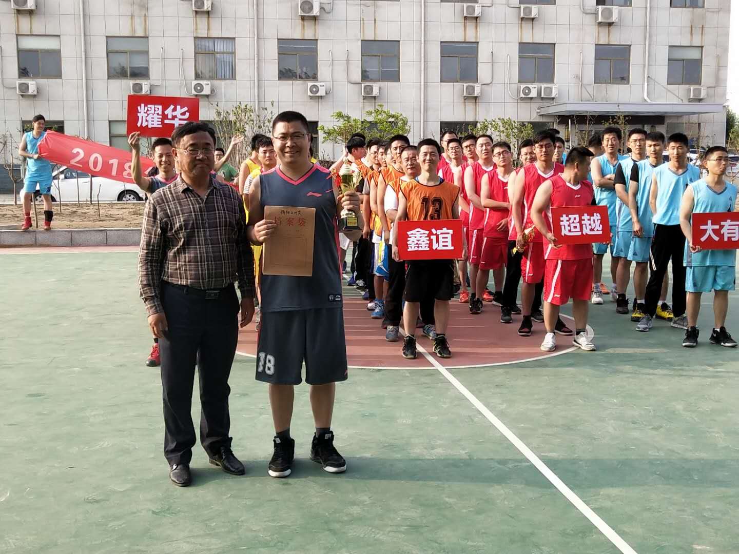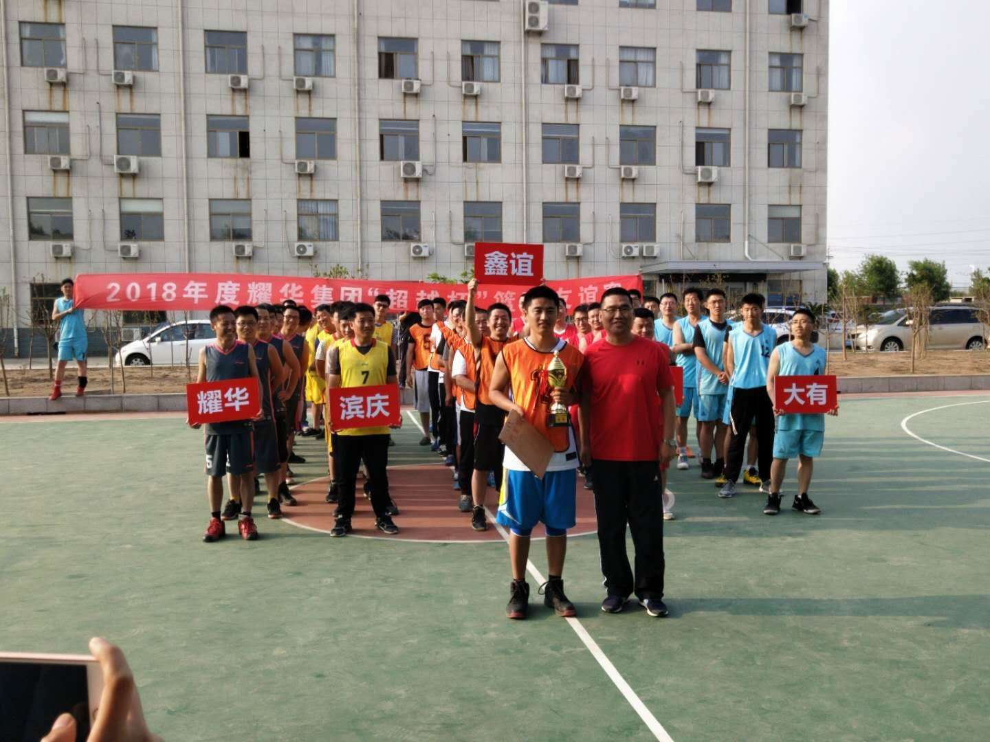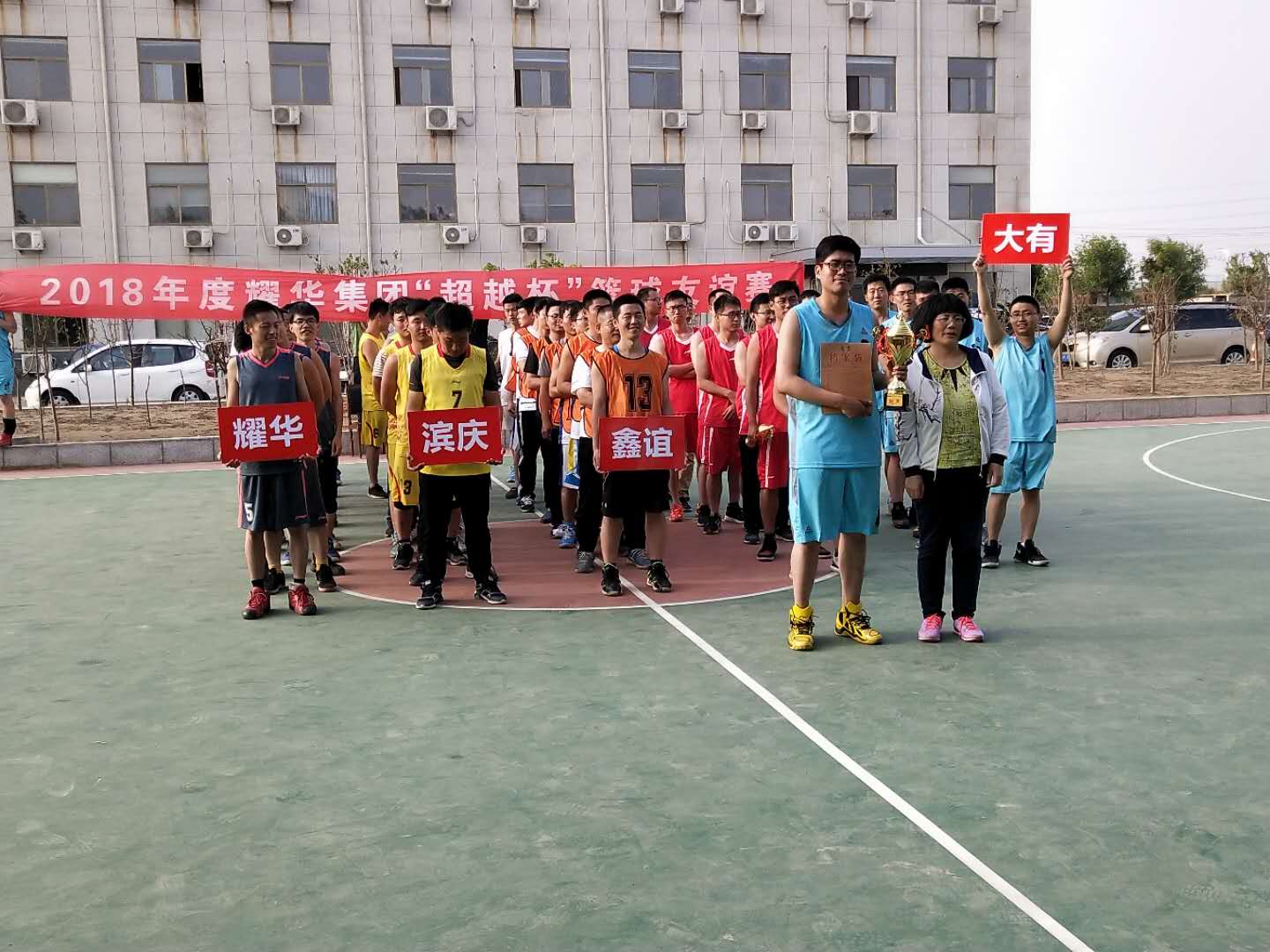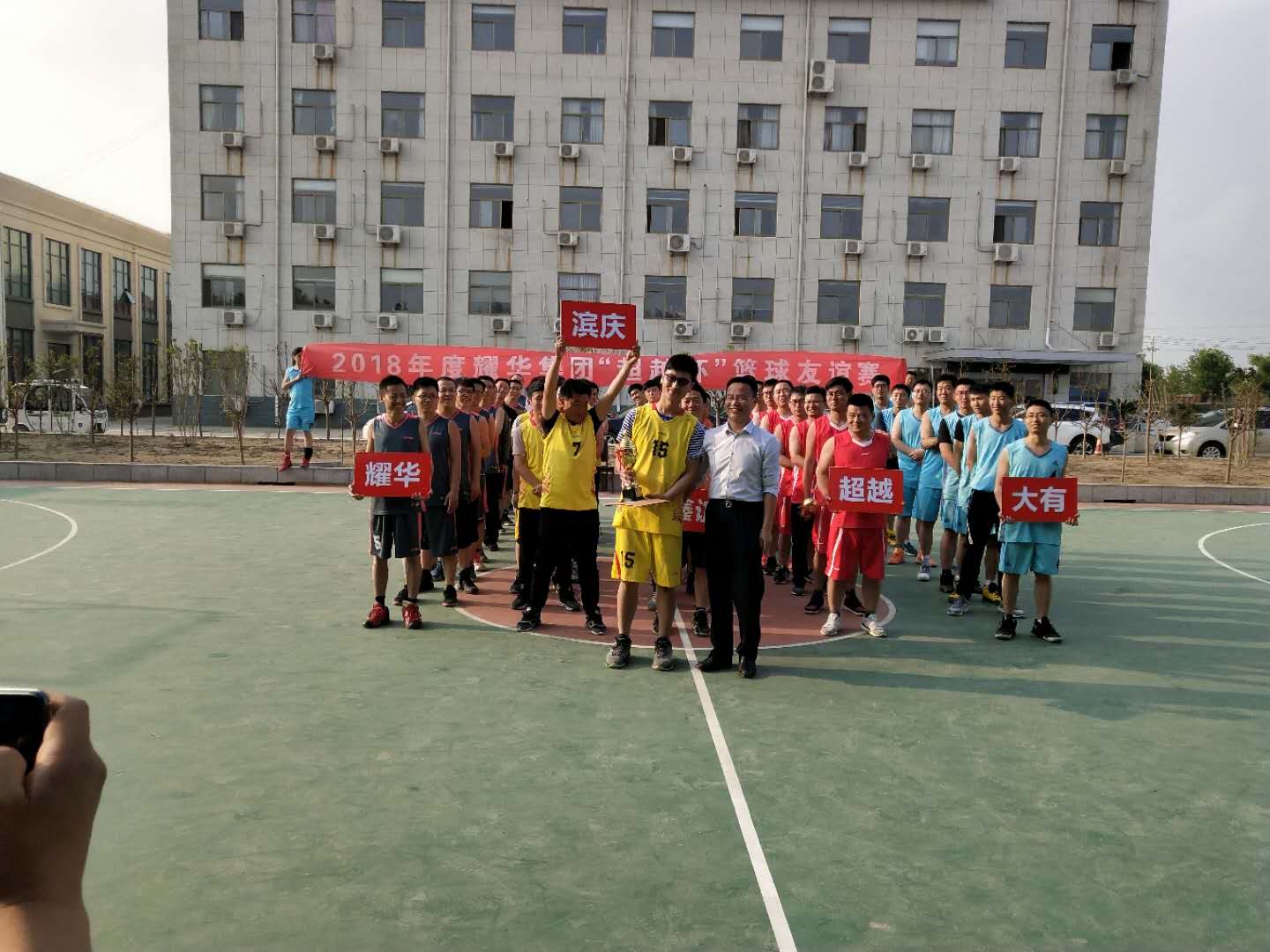 2018年5月19日,由濱州大有新能源開發(fā)有限公司主辦的2018耀華集團“超越杯”籃球友誼賽在大有公司成功開幕,本次比賽共5支隊伍,分別為:耀華隊、大有隊、濱慶隊、超越隊、鑫誼隊。