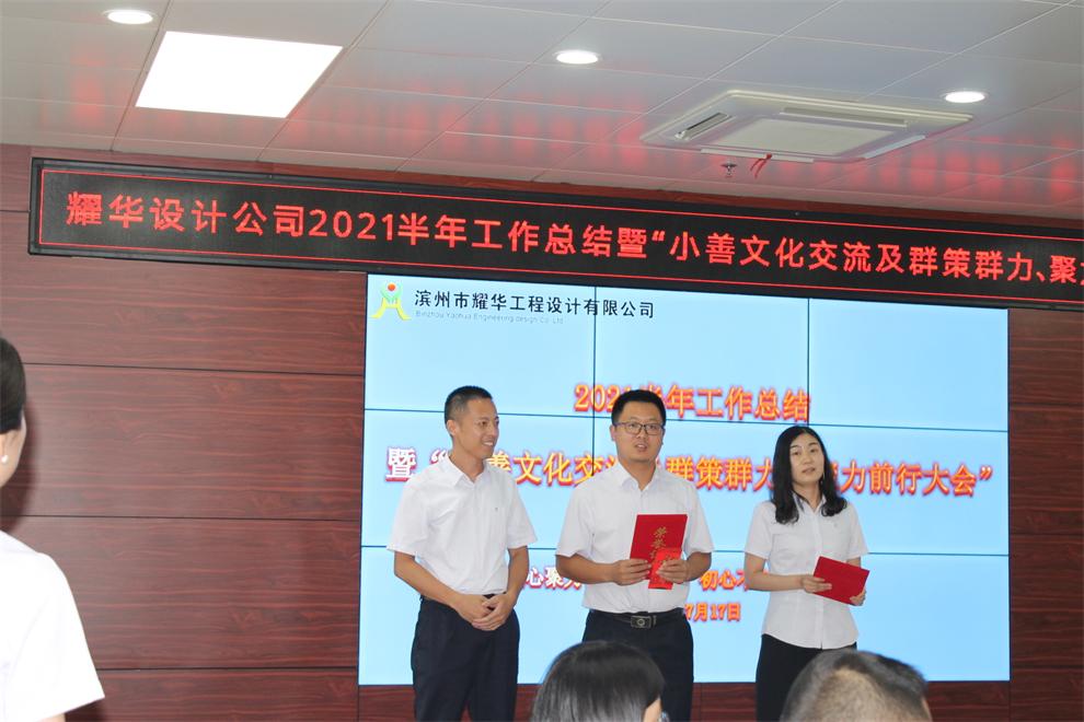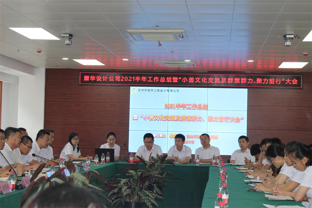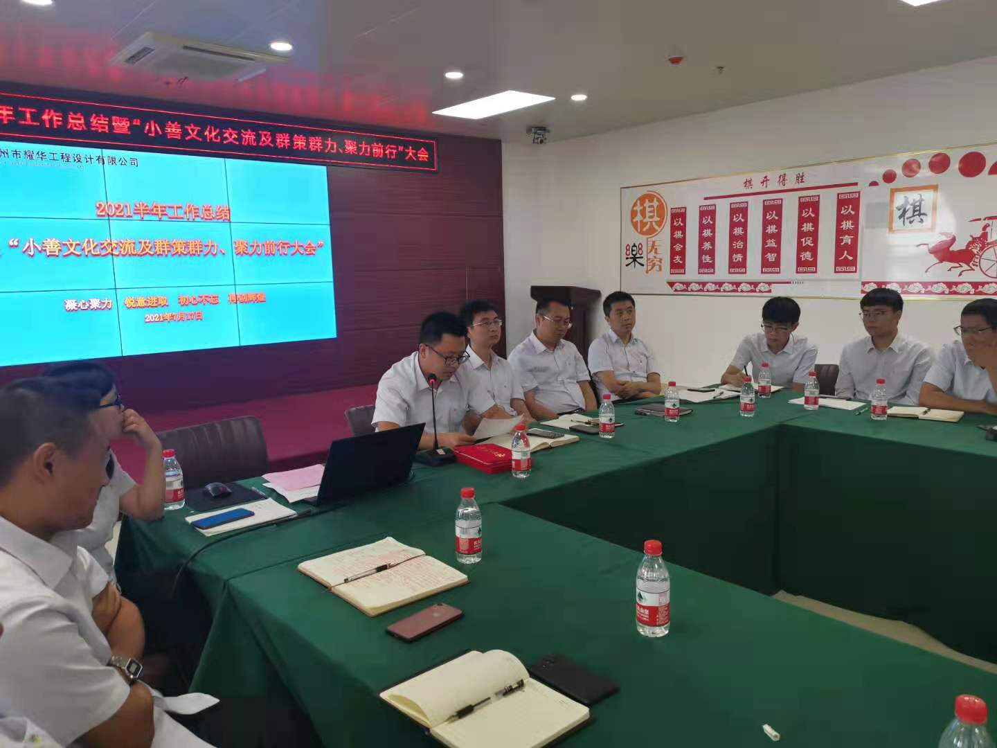 2021年7月17日,耀華設(shè)計公司2021半年工作總結(jié)暨“小善文化交流及群策群力、聚力前行大會”在耀華大廈10樓會議室勝利召開,參加本次會議的人員有:集團(tuán)公司領(lǐng)導(dǎo)及設(shè)計院全體干部職工。