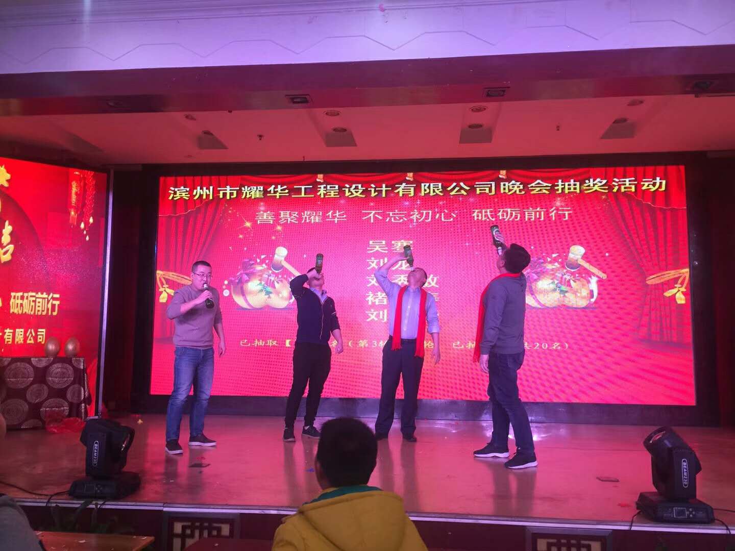 宴會(huì)環(huán)節(jié)董事長致祝酒辭,董事長慷慨激昂的致辭引起了大家的共鳴,接著一首《把最美的歌兒唱給弟兄們》更是贏得了現(xiàn)場(chǎng)觀眾的聲聲叫好。宴會(huì)環(huán)節(jié)穿插了抽獎(jiǎng)及互動(dòng)游戲,精彩不斷。